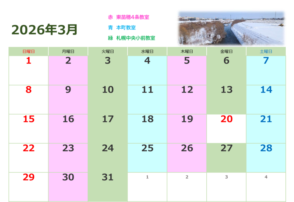 他教室の開室日に振替ができるので、